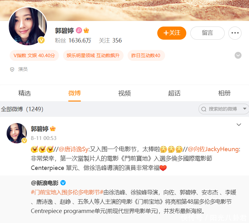 尤其是生了二胎之后,连个东谈主酬酢平台都顺利停更了,最近半年唯逐个条微博,照旧给电影宣传。